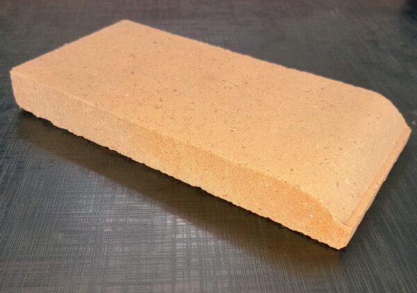 Tejuela refractaria canto plano de 11.5 x 23.5 x 2.7 cm con terminación en curva. Resiste altas temperaturas, ideal para revestimiento de parrillas, hogares, hornos de barro, cocinas.